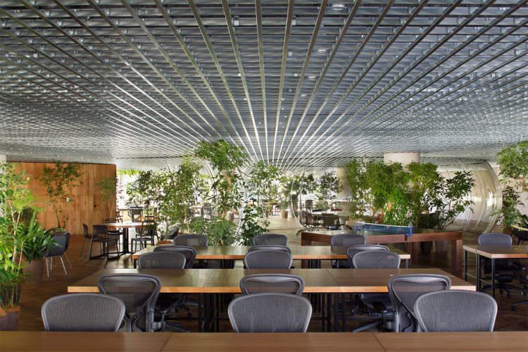 16人が座れる直径4mの円形テーブルは、アーサー王の円卓の騎士よろしく、グループ会社の役員たちが上下関係なくフラットに向かい合うことを可能にする。テーブルは中心に向けてわずか8ミリの勾配をつけることで、座る人々の自然な前傾姿勢を引き出し、会議に前向きに参加できる仕掛けとなっている。ここはグループ会社の社員が業務に誇りを持ち、共に集い、力を合わせることのできるオフィスである。