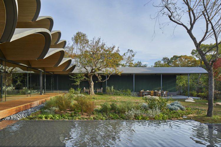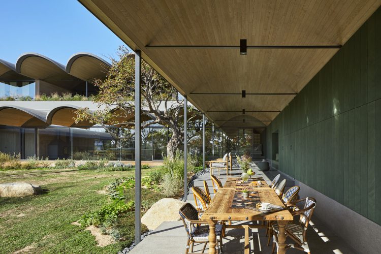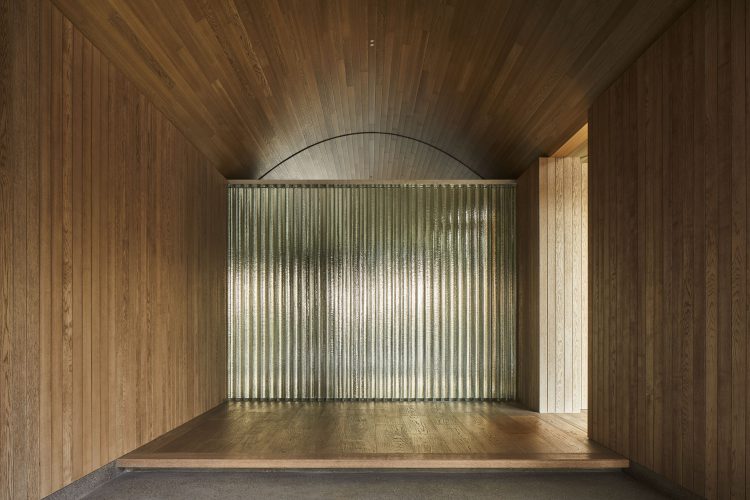 本来ヴォールト屋根は少ない柱による大空間の実現を目指すものであるが、ここではヴォールトが緩やかに空間を分節することに着目して、筒型ヴォールトのスパンを小さく、高さを低く抑えて反復させた。天井は最も高い箇所で高さ3380mm、最も低い箇所で2080mmとした。それによりメリハリのある空間が生まれた。