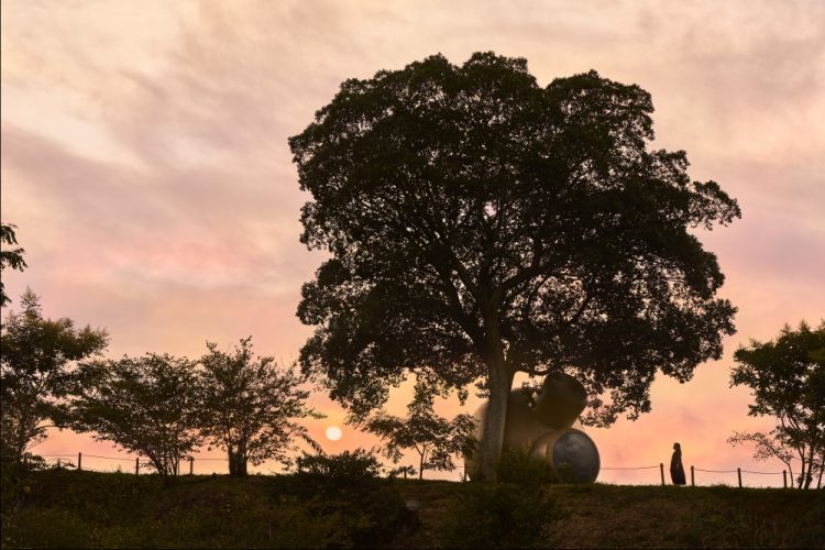 農業生産法人が運営する農場に立つ、オラファー・エリアソンの作品「Mirror my orgasmic journey in me」の展示室である。 この作品は無数の円相によって仏の姿を彷彿とさせる形態が特徴である。そこで畑脇の大樹の下を敷地として選定し、そこに農夫が豊作を祈るための祠を設けた。