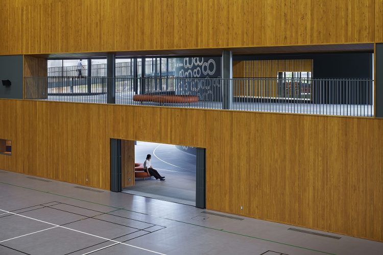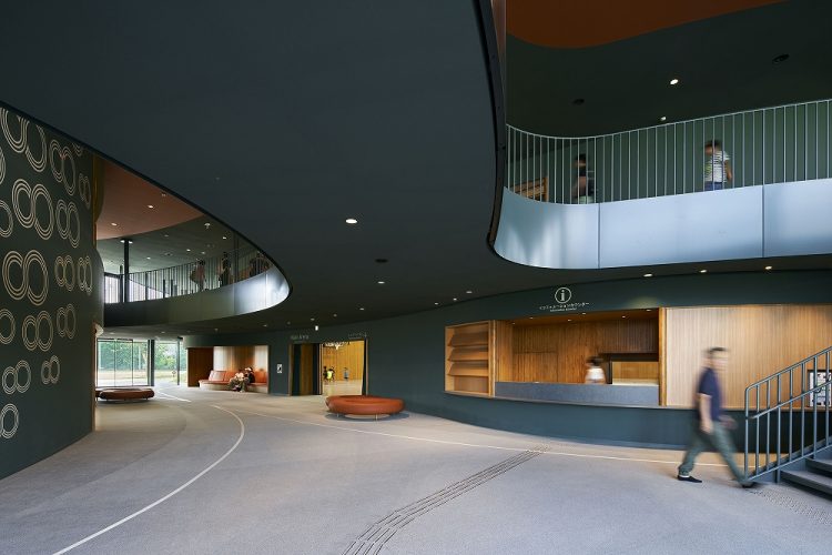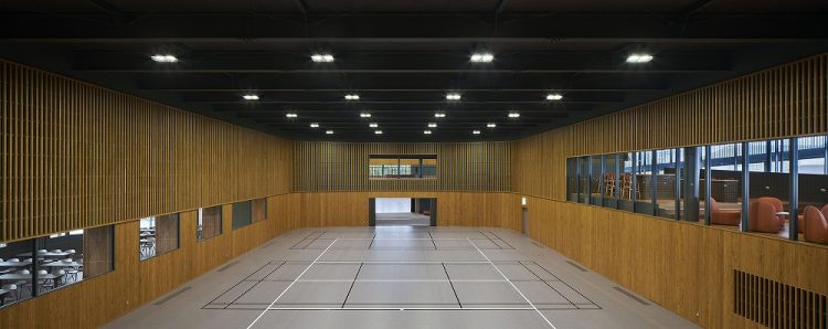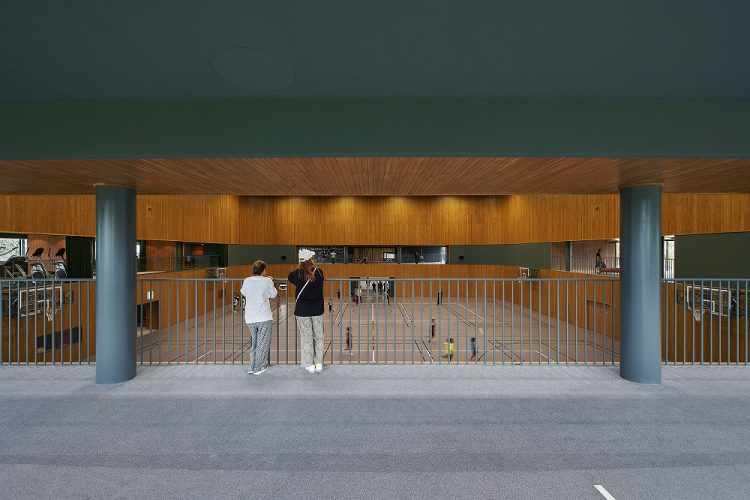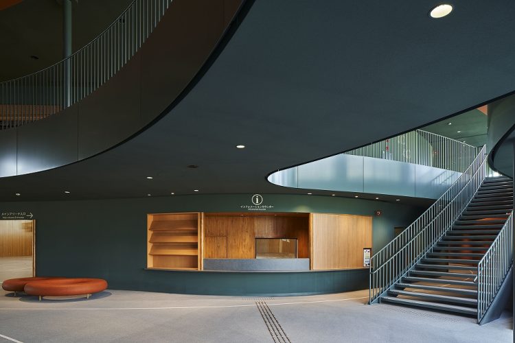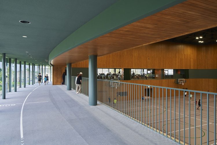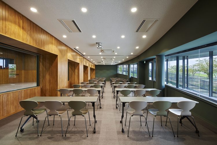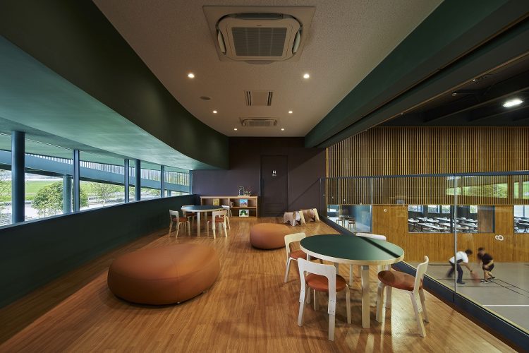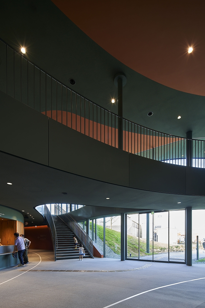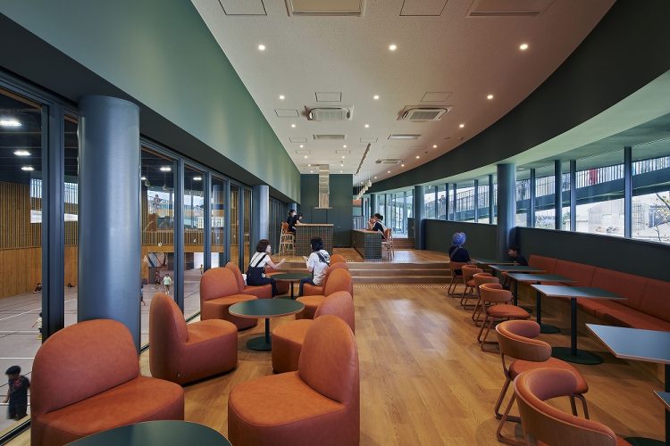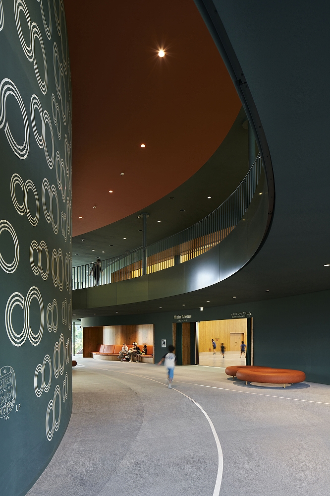 ∞廻廊と四角いアリーナの間には会議室やカフェ、キッチン、アリーナ観覧席、談話室、トレーニングルーム、洗濯室、キッズルームといったさまざまな用途の空間があり、施設のいたるところに休憩や応援する人たちのための多様な居場所がある。∞廻廊とアリーナの両方に接しているため、動く人にも留まる人にとっても、様々なプログラムや多様な人々の出会い、交流の促進が可能となるだろう。