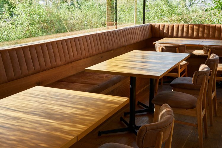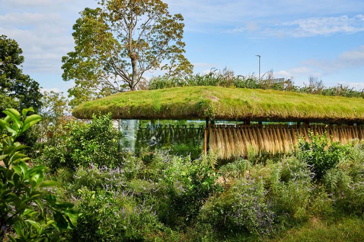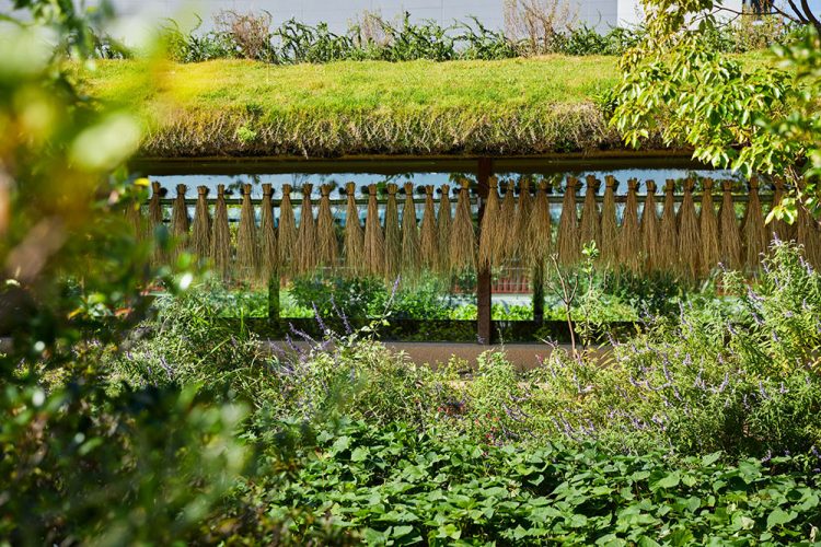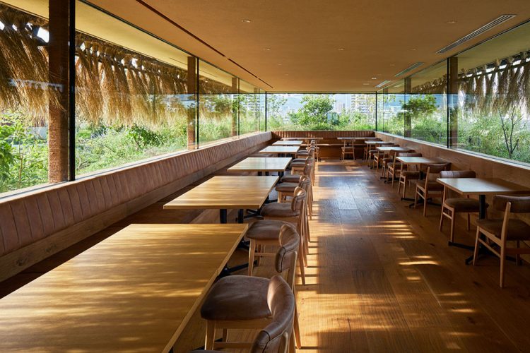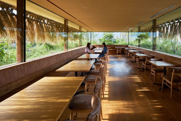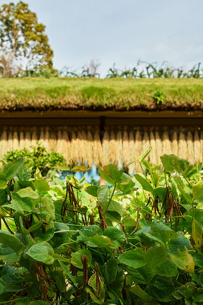 使用者は畑の中の周遊コースを通り、食工場の見学路を廻って「畑LABO」内の建物にアプローチする。建物は畑に潜り込むような佇まいで、客席のテーブルは畑の地面と同じ高さである。研究者やお客さんは普段とは異なる目線で、目の前の食材と対話しながら食事を楽しむことができる。また窓外の柱側面のフックには日干し竿が掛けてあり、収穫した農作物を天日干しすることができる。作物がカーテンとなって陽光を遮ったり、麦の影が天板にテーブルクロスの模様のような影を落としたり、四季折々の作物を通した柔らかな陽光が室内に降り注ぐ。農業と建築の境界がゆるやかに溶け合う中で、作物に包まれ、作物と同じ目線で過ごす建築である。