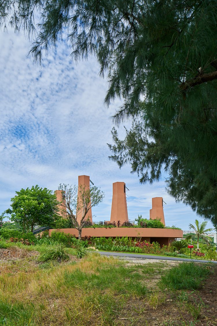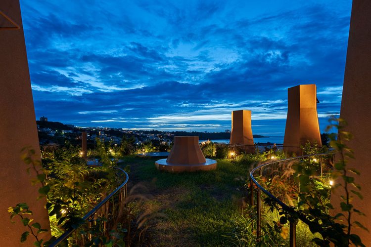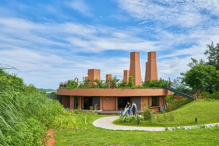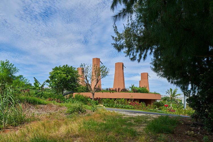 旅行が難しい重度の難病の子とその家族を沖縄本島恩納村に招き、生きる活力を補充してもらうためのケアハウスである。施主である公益社団法人「難病の子どもとその家族へ夢を」からは、最後の旅かもしれないと覚悟して来る家族が多い中で、難病の子を病人として扱う無味乾燥な施設ではなく、子どもらしく親らしくいられて、旅が家族の絆を一層深められること、そして将来わが子が亡くなったとしても家族が再訪して、思い出と共に静かに過ごせる場、さらに健常者が他者への思いやりと優しさを深めるための研修施設となることが求められた。敷地は2階レベルであれば海が見えたが、施主は沖縄らしい植生の庭に包まれた平屋で、難病の子どもを持つ家族たちとスタッフが互いの気配を感じながら、一体的に過ごすことを望んだ。
