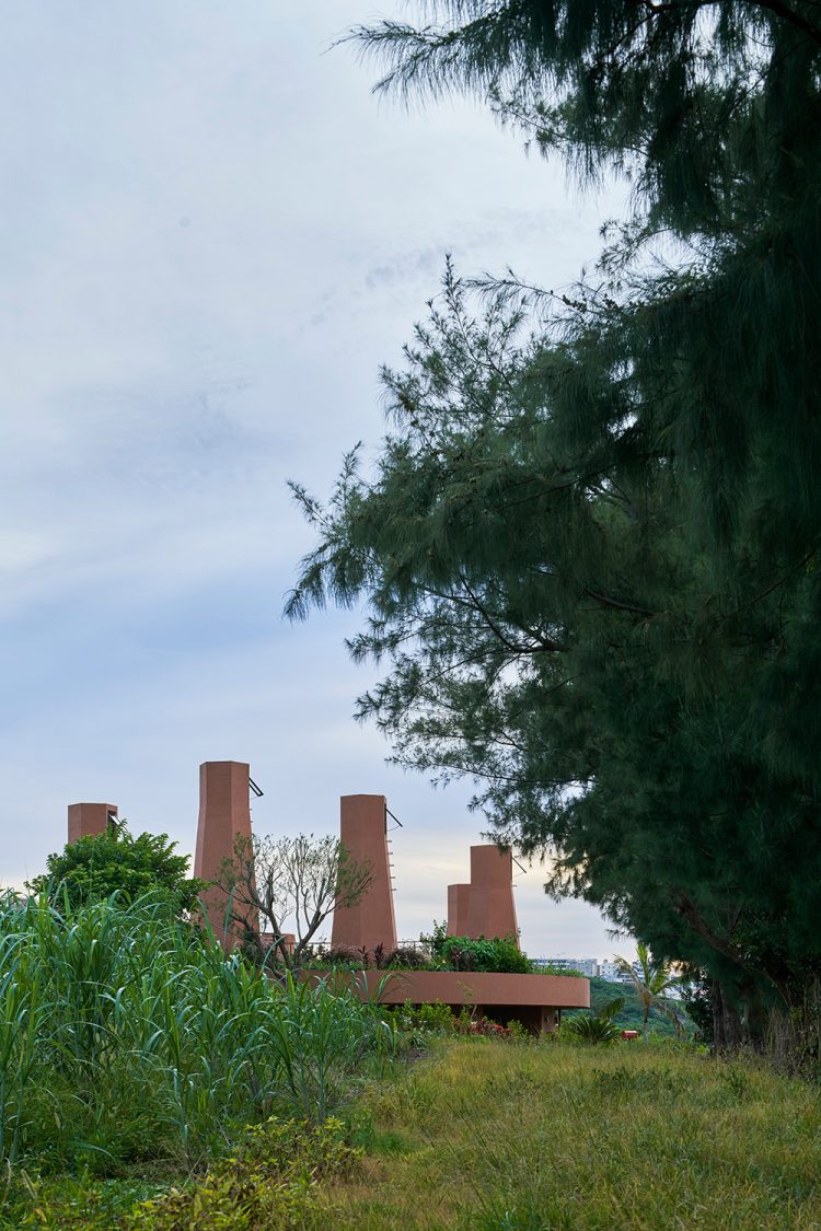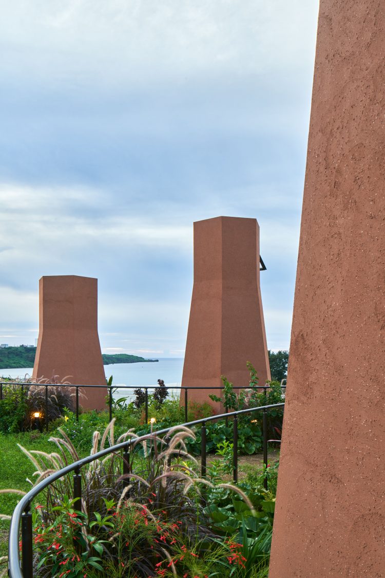 屋上庭園では、中央の円形ベンチから碧い海と街、サトウキビ畑が360度見渡せる。求心的な水の中庭と遠心的な屋上庭園。動と静の対比的なふるまいを空間側で用意した。屋上階段はスタッフや親が車椅子を両側から支えて昇降しやすい構造で、階段というバリアを思いやりや思い出づくりとして肯定的に捉えている。これは施主からの言葉、「バリアフリーは彼らの自由と尊厳を守るものだが、バリアをすべてなくすことはできない。むしろ、どんな人にも存在する物理的・精神的バリアに気づき、分かり合い、助け合うことが必要で、それを促すバリアなら、ここではあってよい」という考えに基づいている。